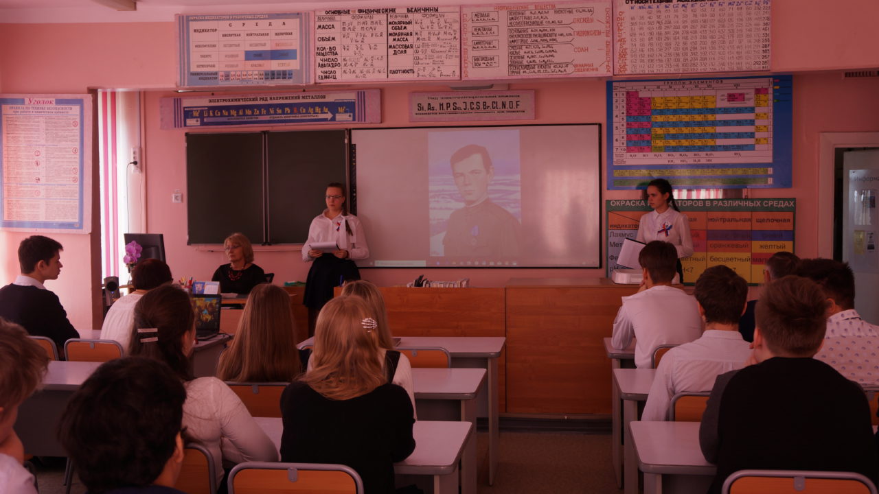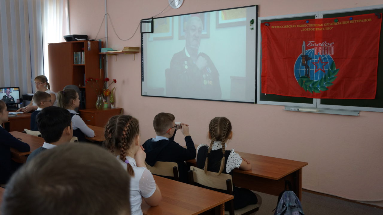 Во время уроков учащиеся старших и средних классов смогли посмотреть и обсудить неигровой национальный видеофильм «Портрет героя» (созданный при финансовой поддержке Министерства культуры РФ), рассказывающий о деятельности Хабаровского краевого отделения «БОЕВОГО БРАТСТВА» по увековечению памяти погибших при исполнении воинского долга земляков. Перед школьниками выступила автор фильма режиссер «Дальневосточной киностудии» Елена Шумилина.